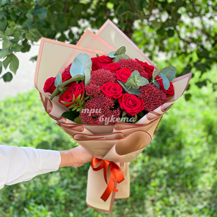 - Красные розы, 11 шт.