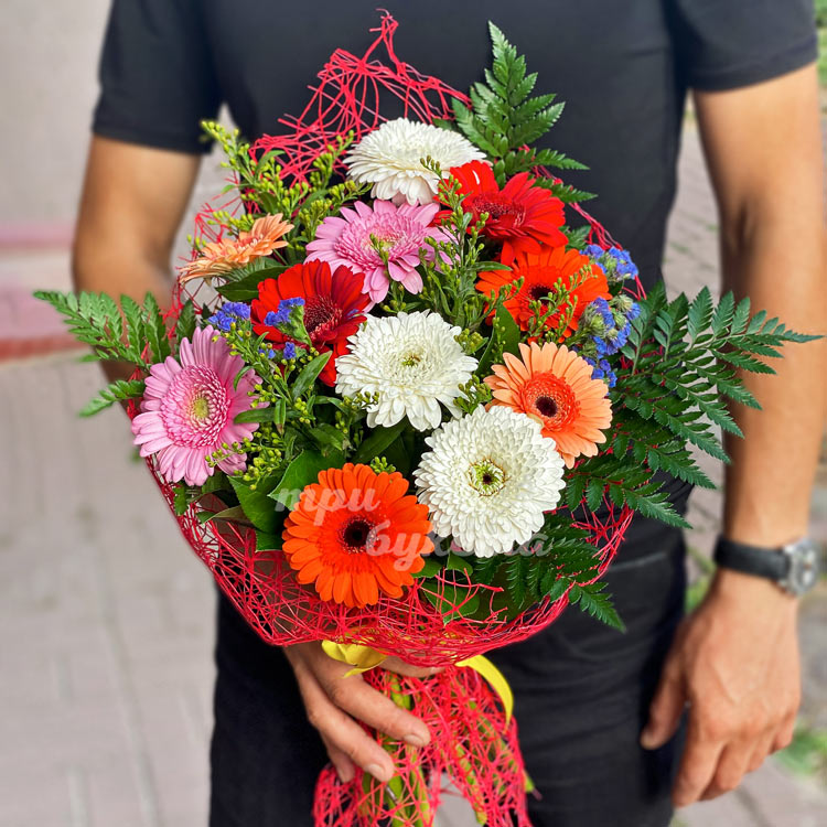 Букет из 11 разноцветных гербер