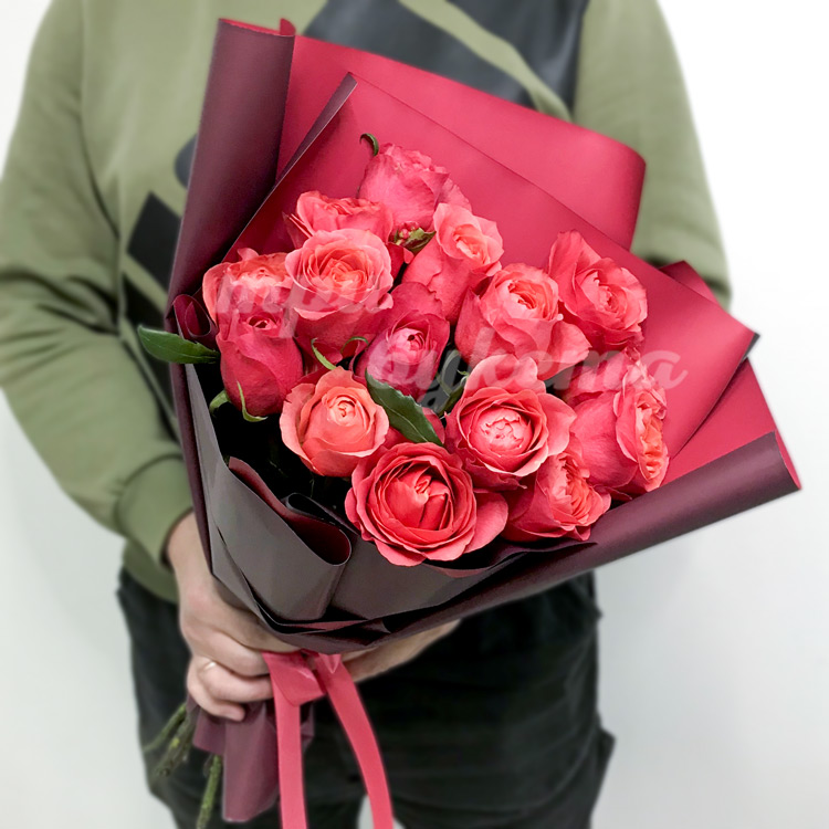 - Розовые розы, 15 шт.