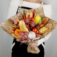 Букет из клубники и розовых роз
