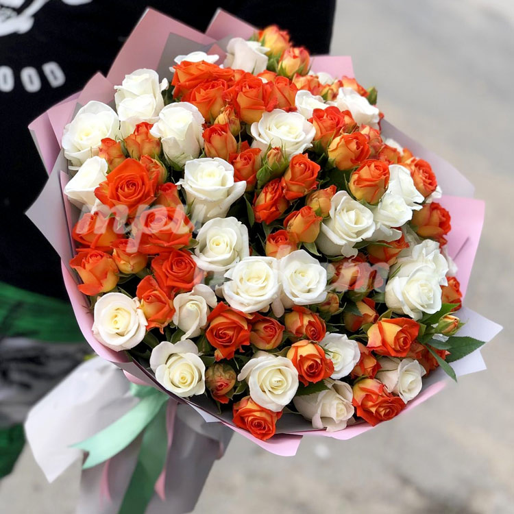 Букет из оранжевых и белых роз