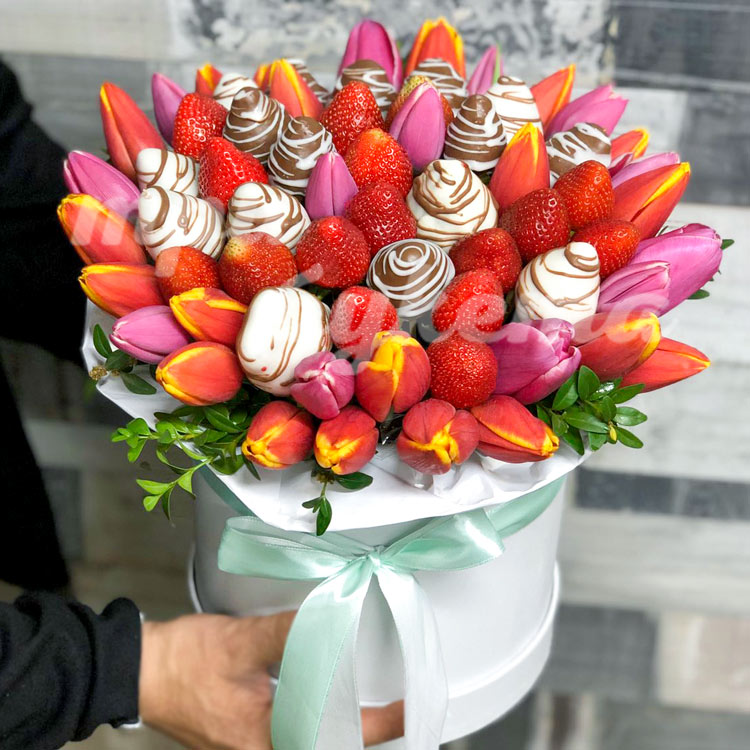Клубника и тюльпаны в коробке