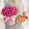 Корзина кустовых роз и тюльпанов