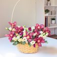 Корзина орхидей с тюльпанами