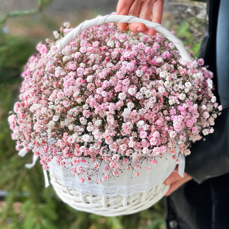 Корзина с 9 розовыми гипсофилами