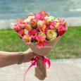 Розовый букет альстромерий и кремовых роз