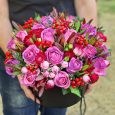 Шляпная коробка роз, ирисов и гвоздик